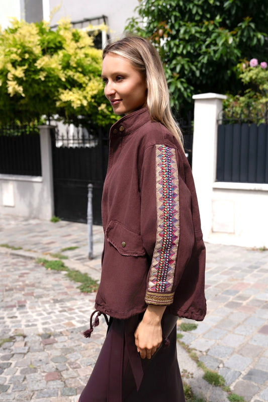 Valentina Wide leg burgundy cord jeans with gold front buttons