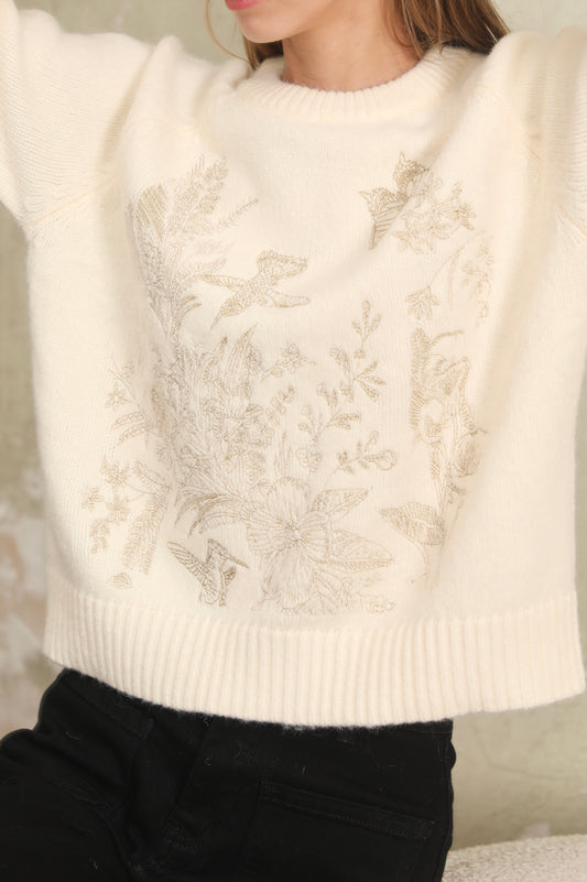 Elaine hummingbird gold stitched ivory jumper