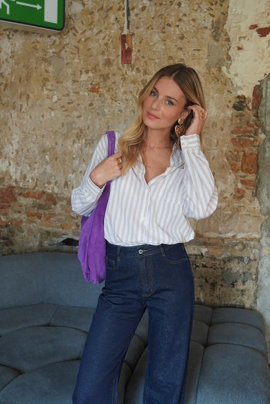 Audrey striped beige beaded sun shirt