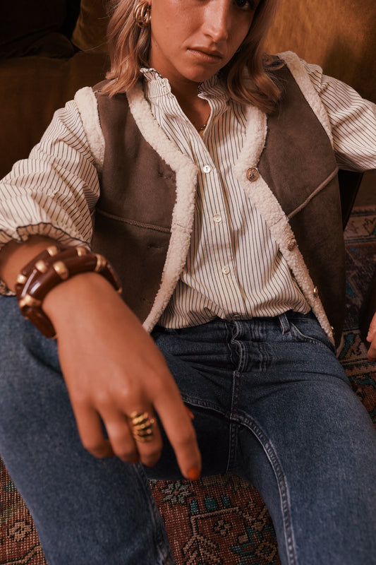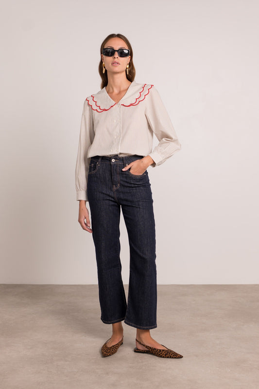 Tara stripe frill collar shirt