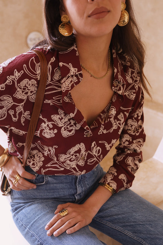 Félicie burgundy embroidered blouse