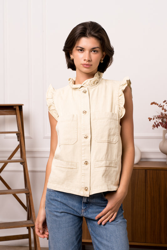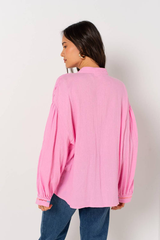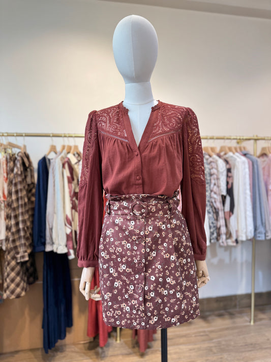 YASVIBE LEAF PRINT PUFF SLEEVE TOP