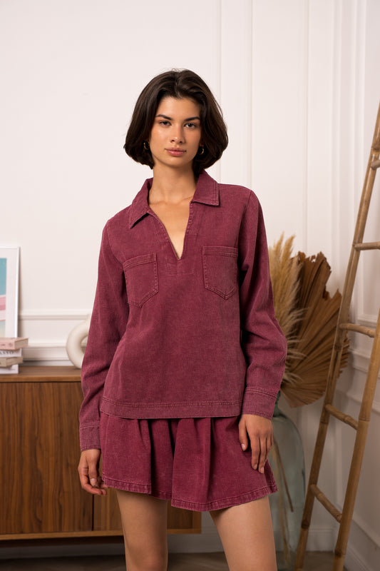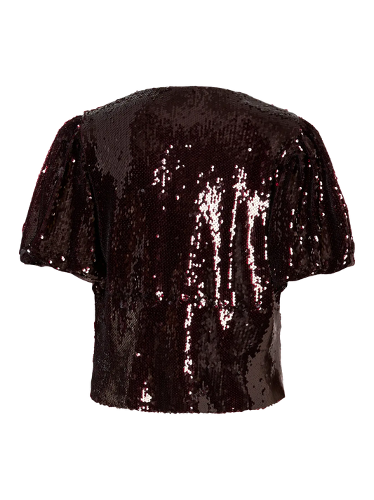 YASROYALINA BURGUNDY WET LOOK SEQUIN TOP