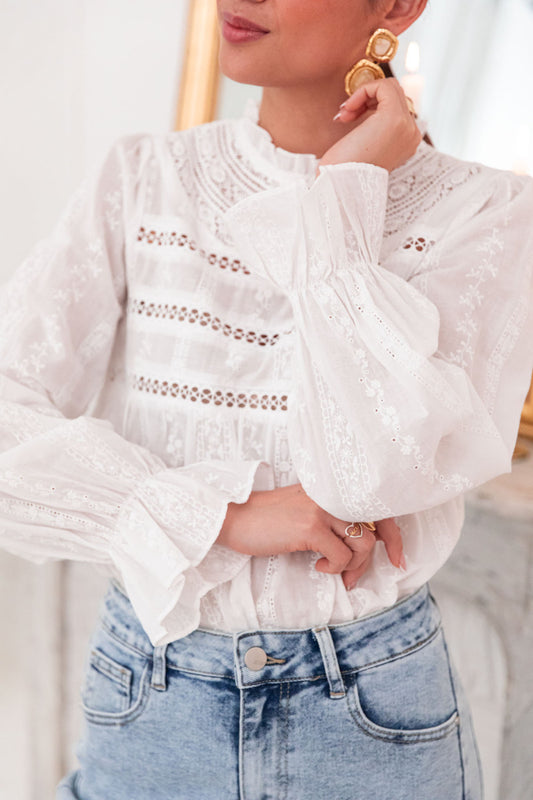 Maude ecru high neck embroidery boho blouse