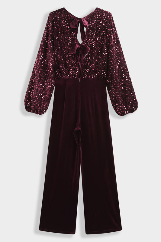 Margot sequin and velvet burgundy jumpsuit