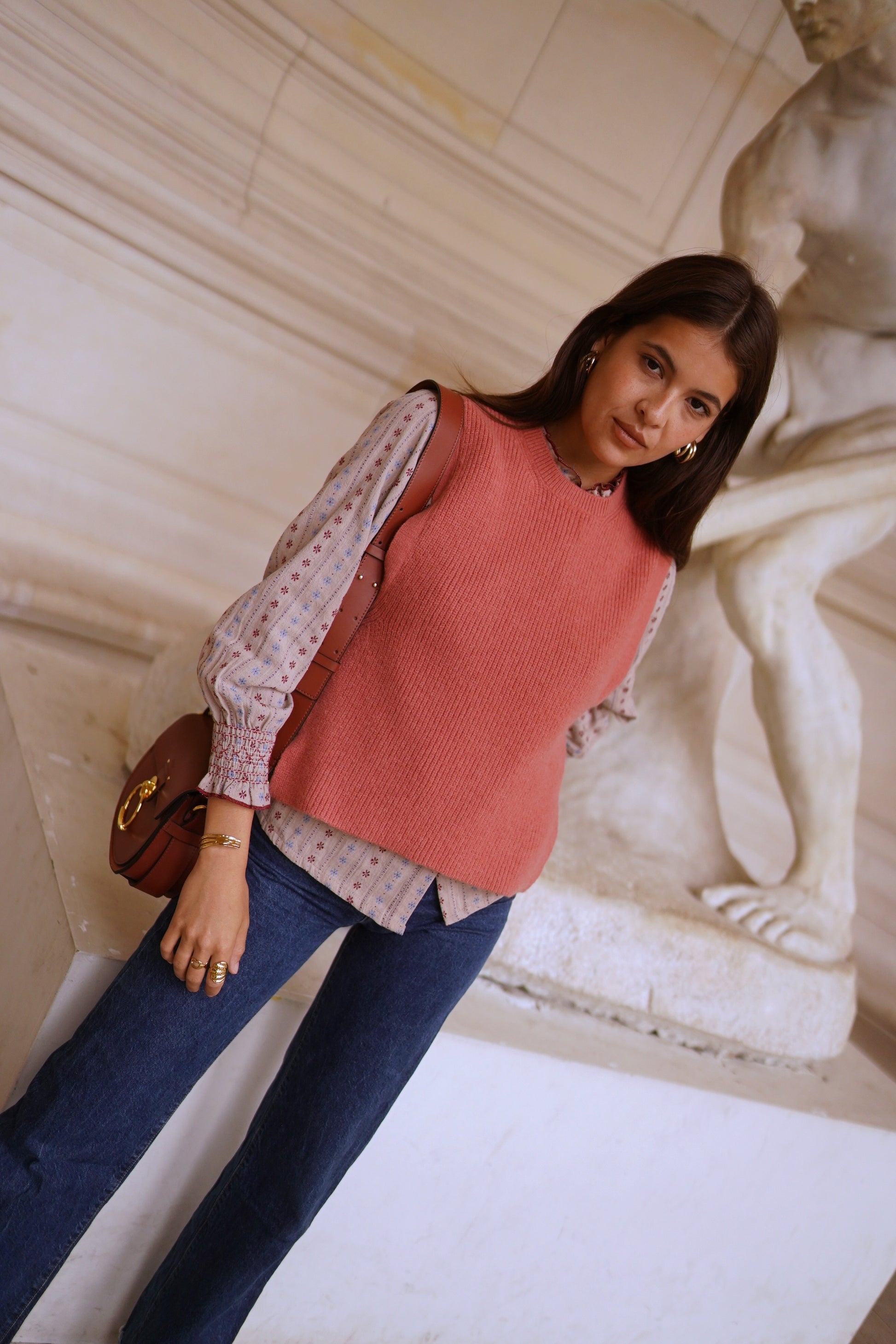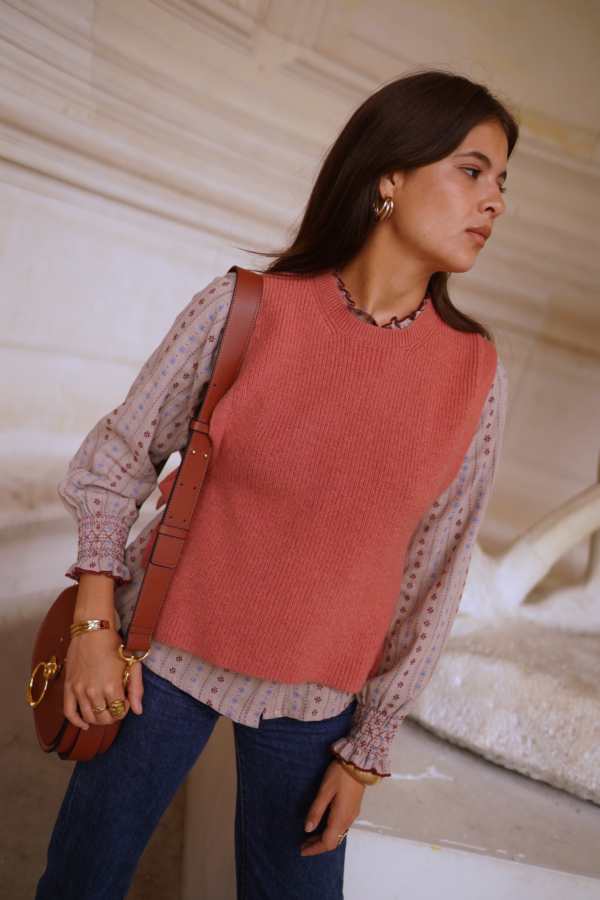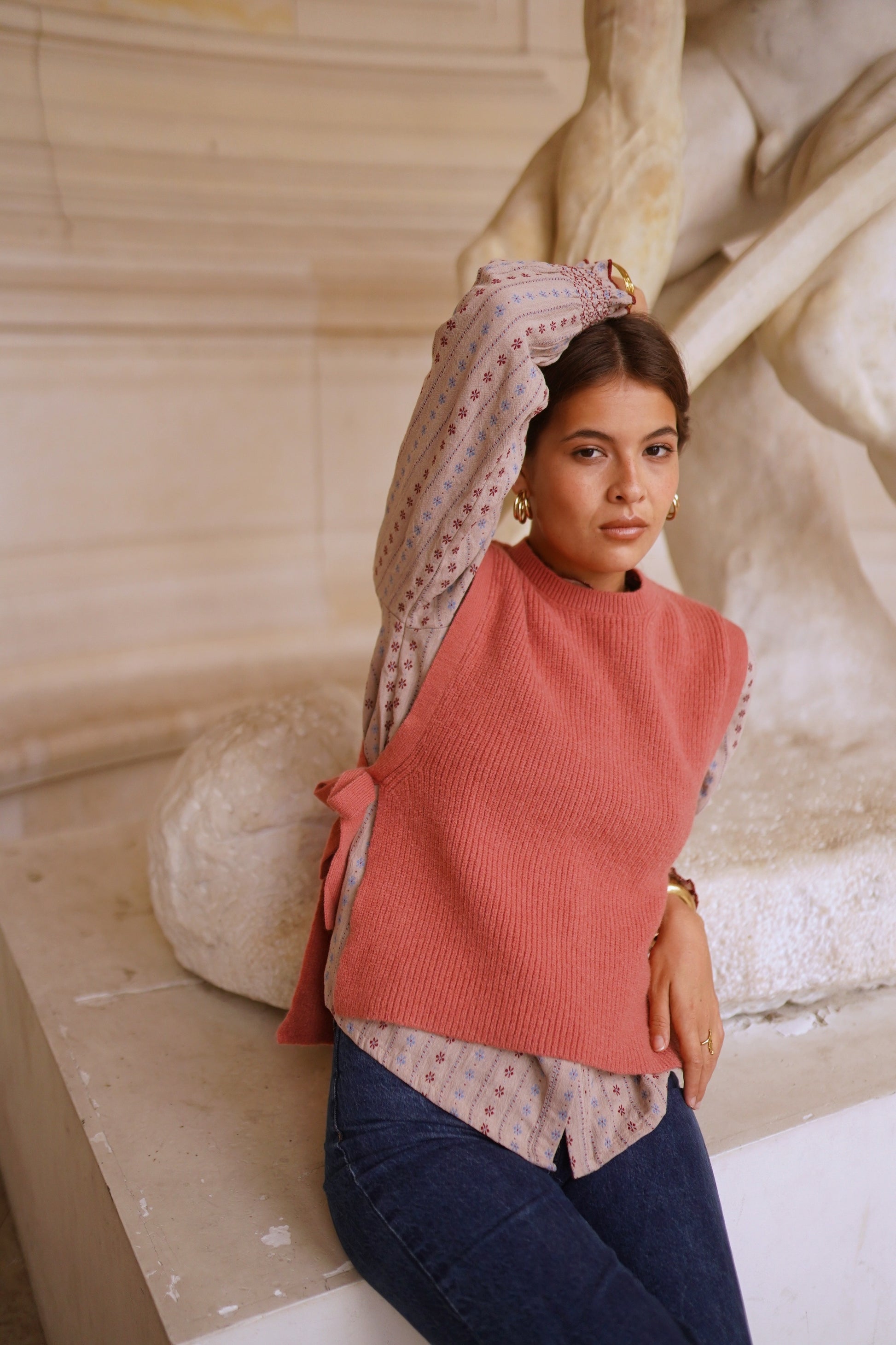 Crafted with a blend of 60% acrylic, 30% polyamide, and 10% elastane, the Ava coral rose sleeveless knit offers a perfect balance of comfort and stretch. The soft fabric provides a cozy feel, while the sleeveless design allows for easy movement. Elevate your style with this chic and versatile knit.