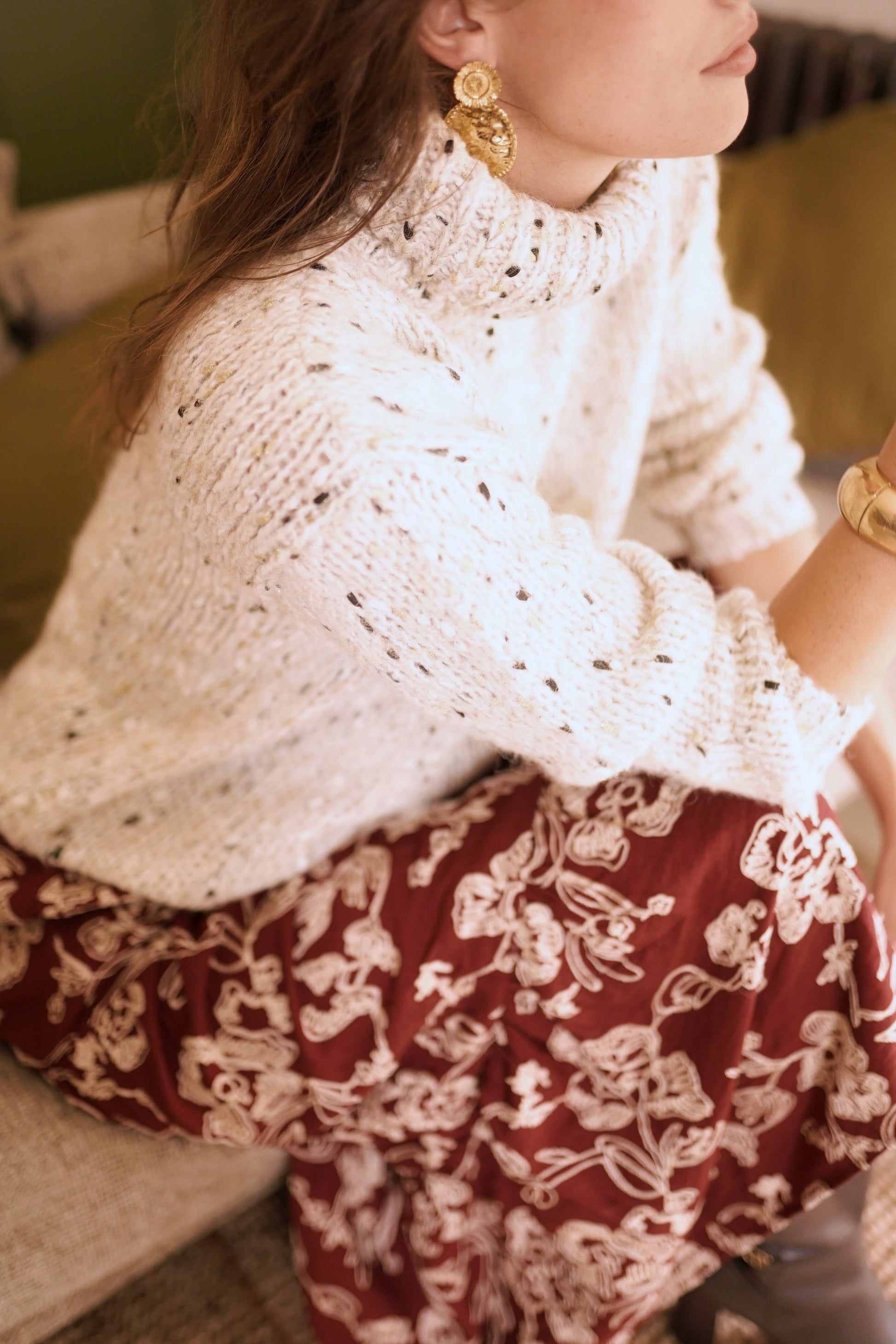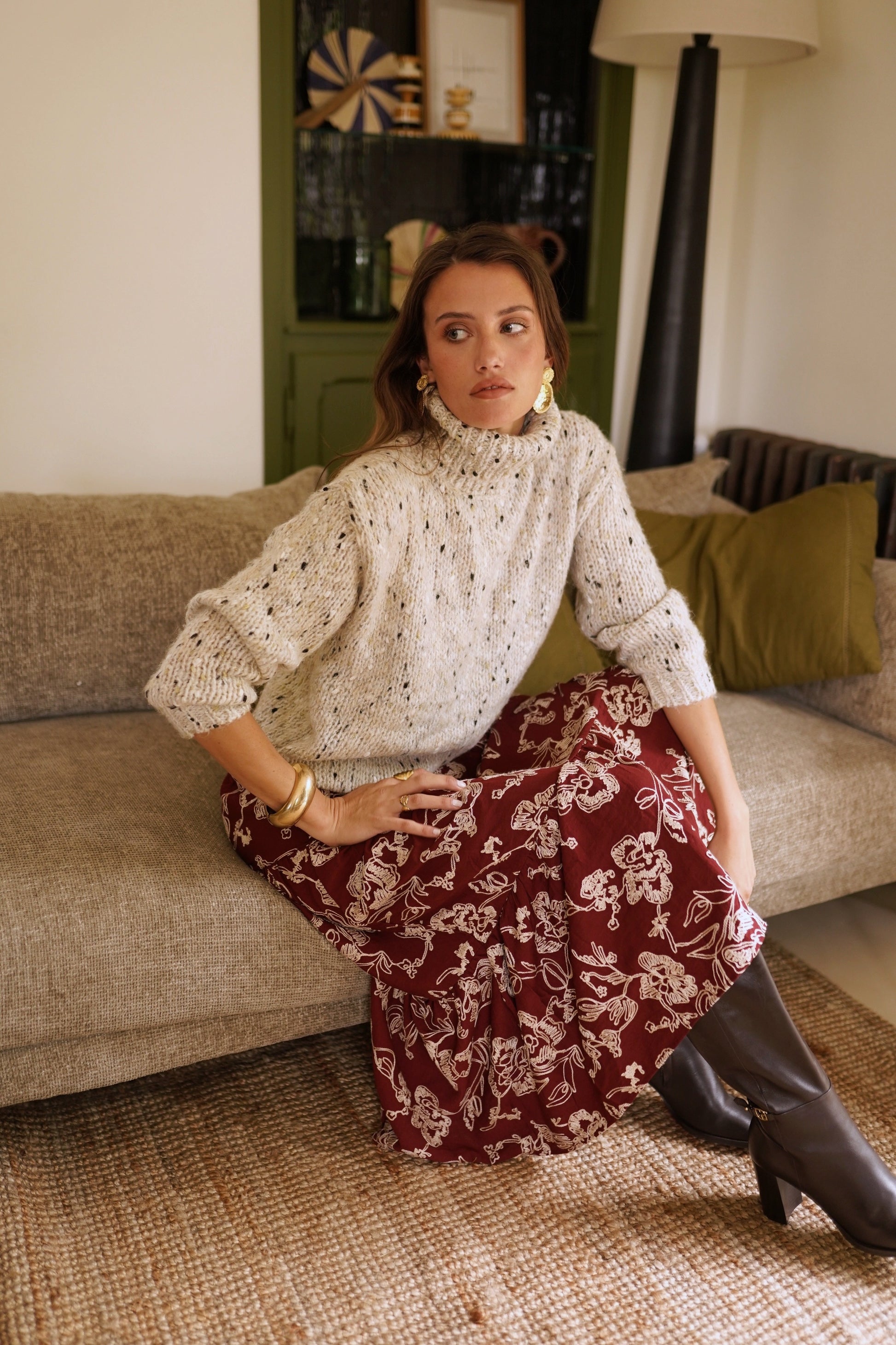 Ayra speckled beige polo jumper