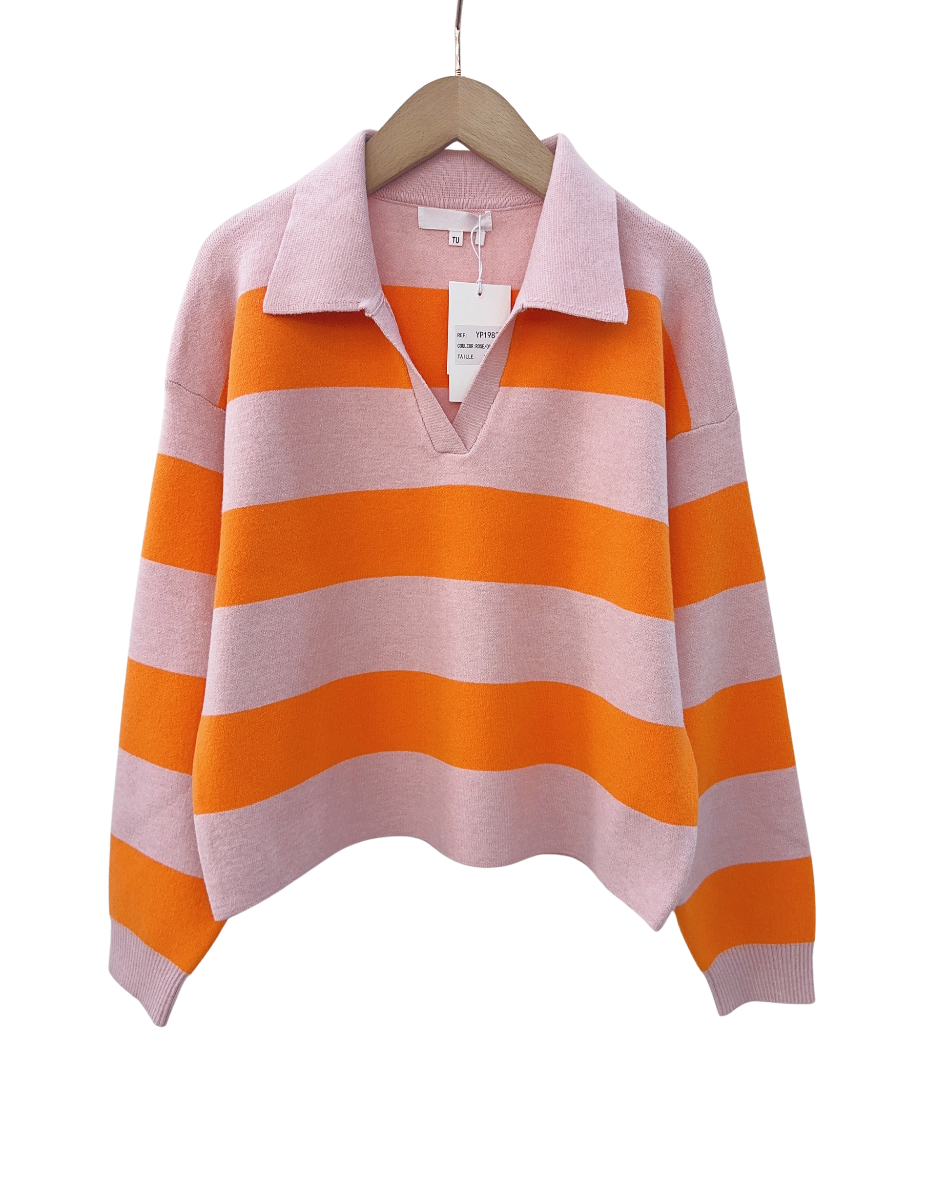 Beth stripe rugby shirt jumper orange and pink