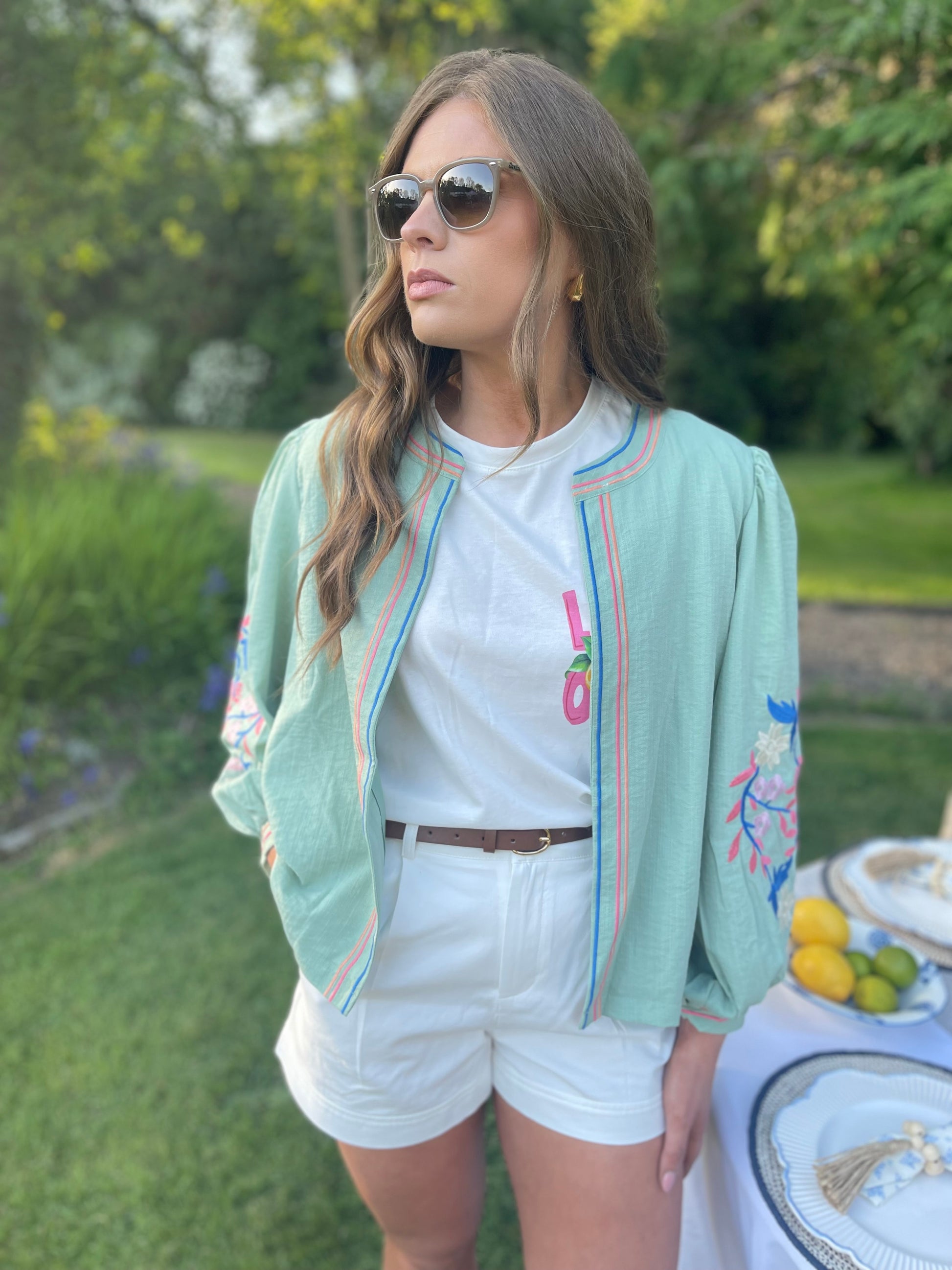 This Cecilia floral boho jacket is perfect for spring with its lightweight design. Stay stylish and comfortable with its relaxed fit. The sage green hue and floral pattern add a touch of boho charm. Elevate any outfit with this versatile piece.
