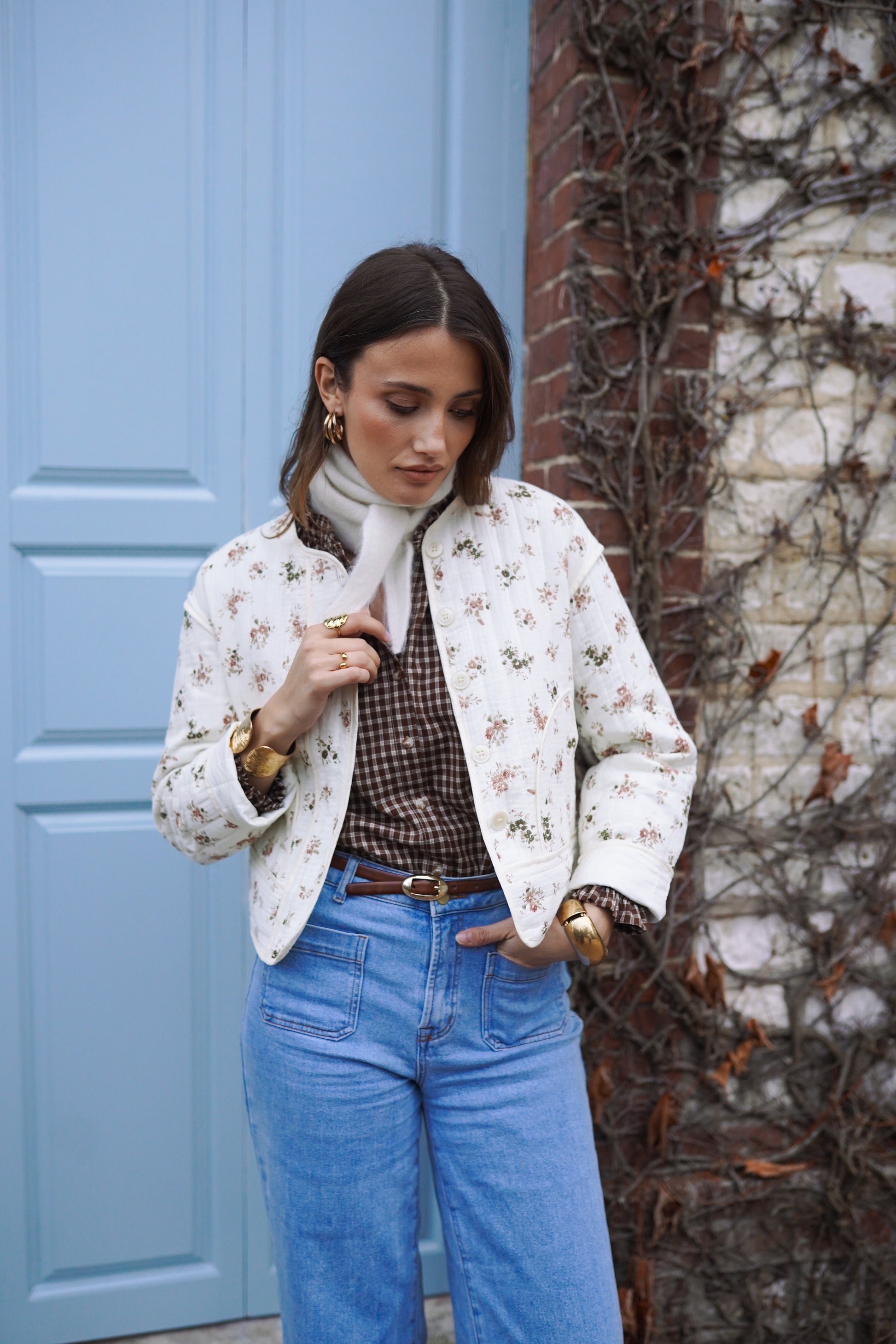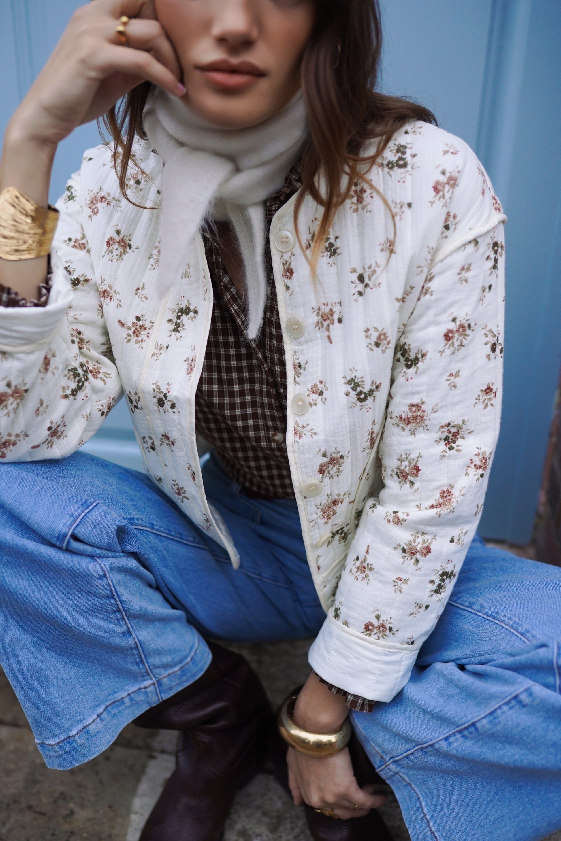 Introducing the Charlotte quilted floral jacket, made from 100% lightweight cotton in a beautiful light beige color. Experience the perfect combination of style and comfort with this breathable and versatile jacket. Stay chic and cool in any season with this must-have addition to your wardrobe.