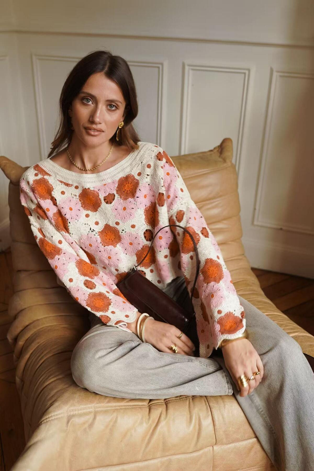 Its slightly loose fit and soft drape provide optimal comfort while highlighting the unique charm of crochet.
