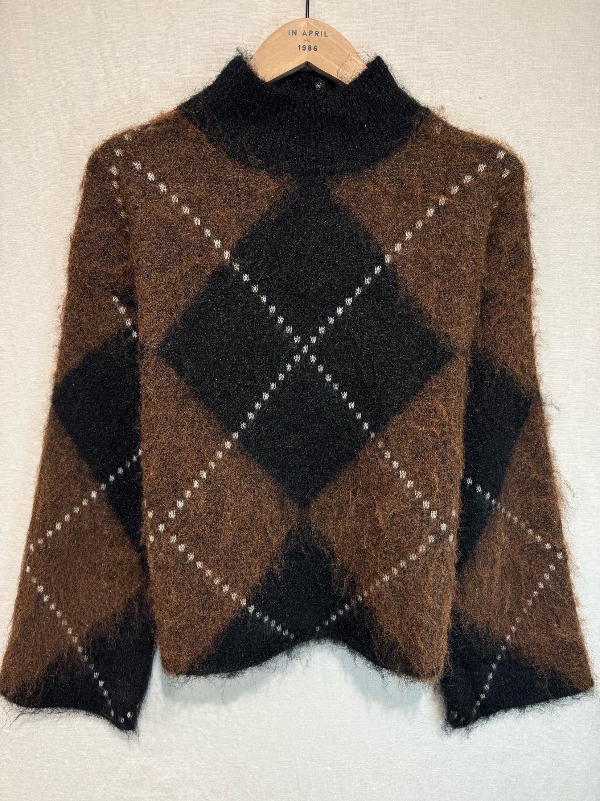 Fluffy Argyle black & brown polo jumper