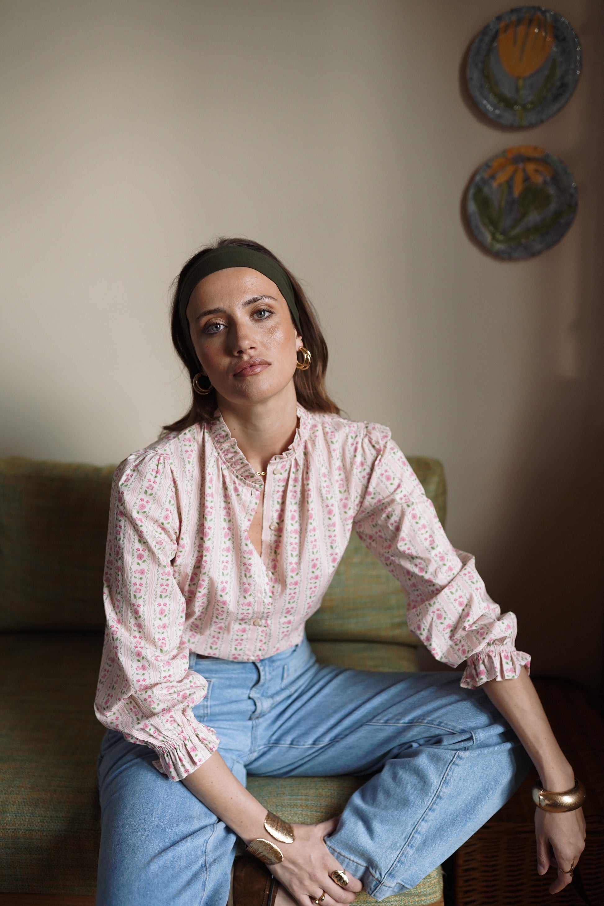 Preorder Grace pink ditsy floral blouse