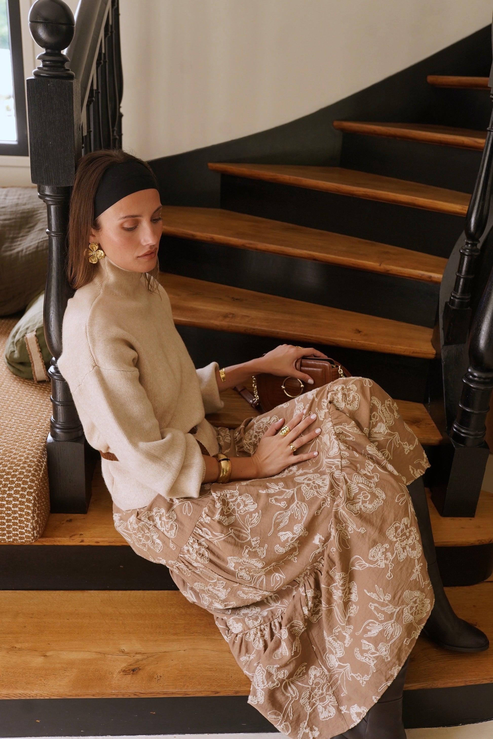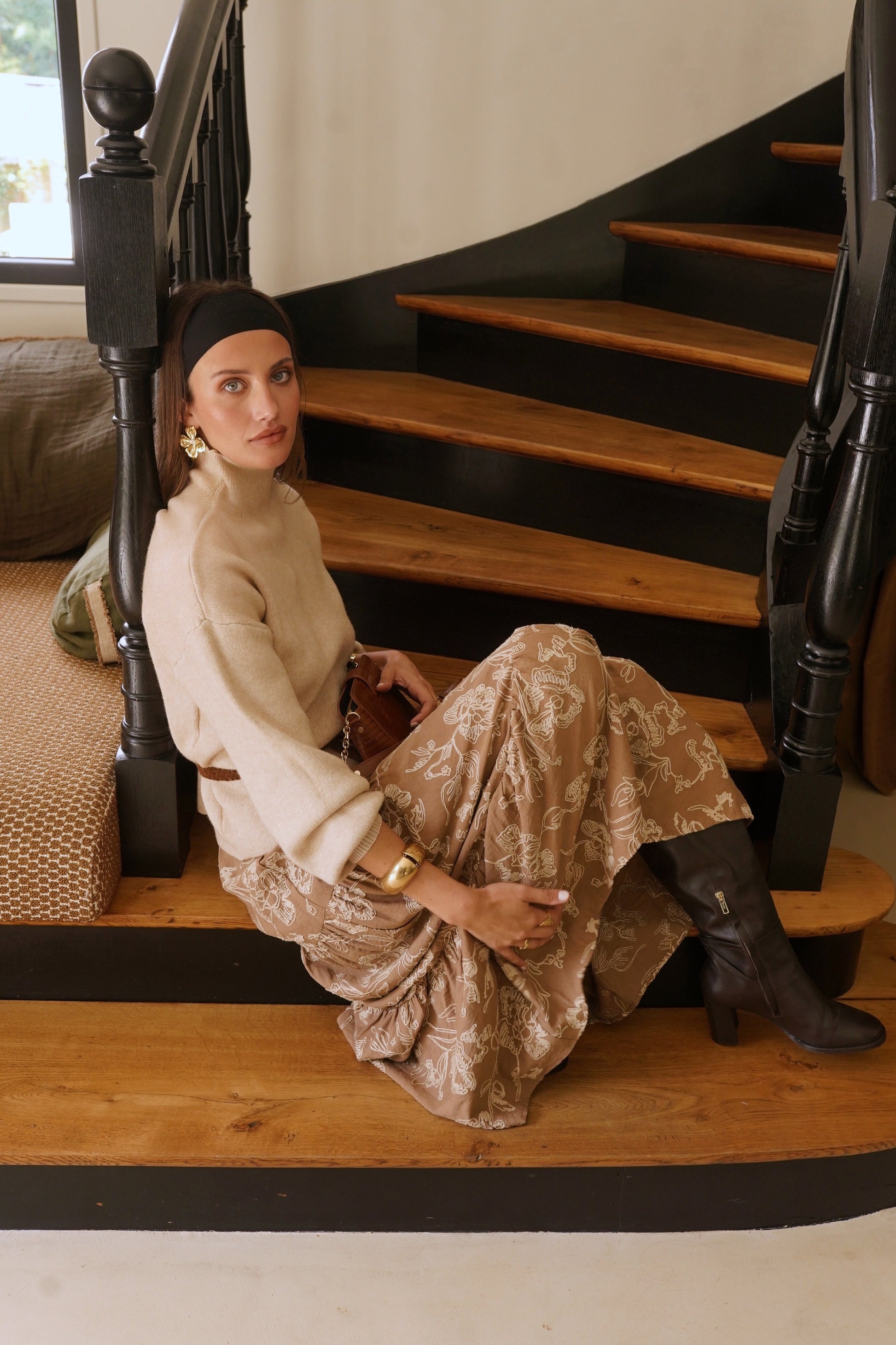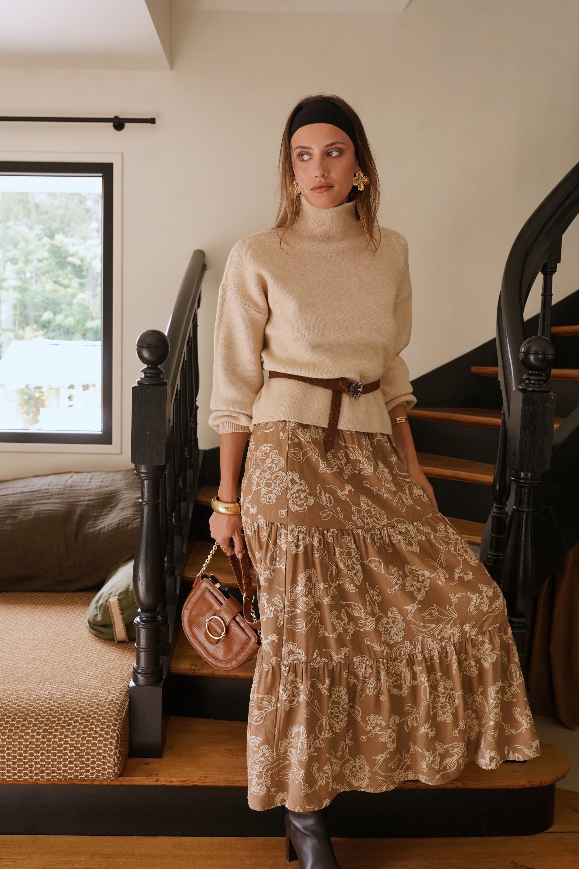 Hilda balloon sleeve coffee polo neck jumper