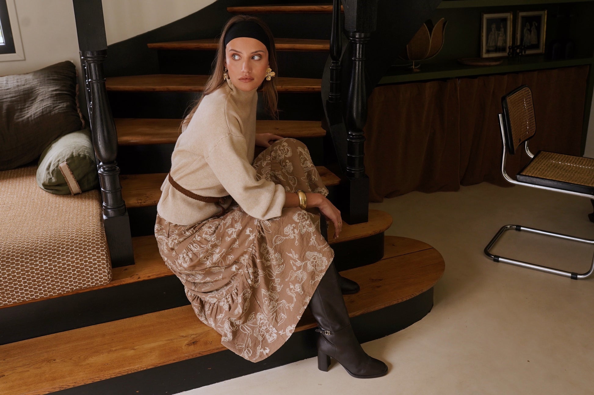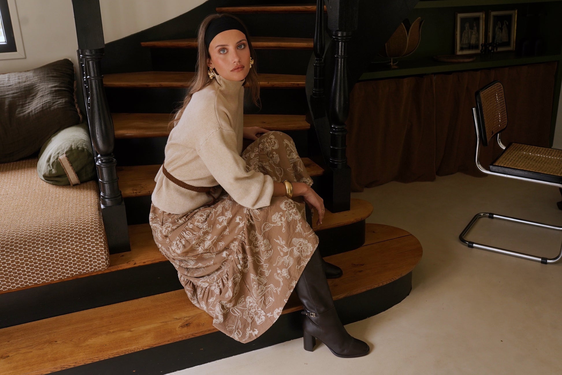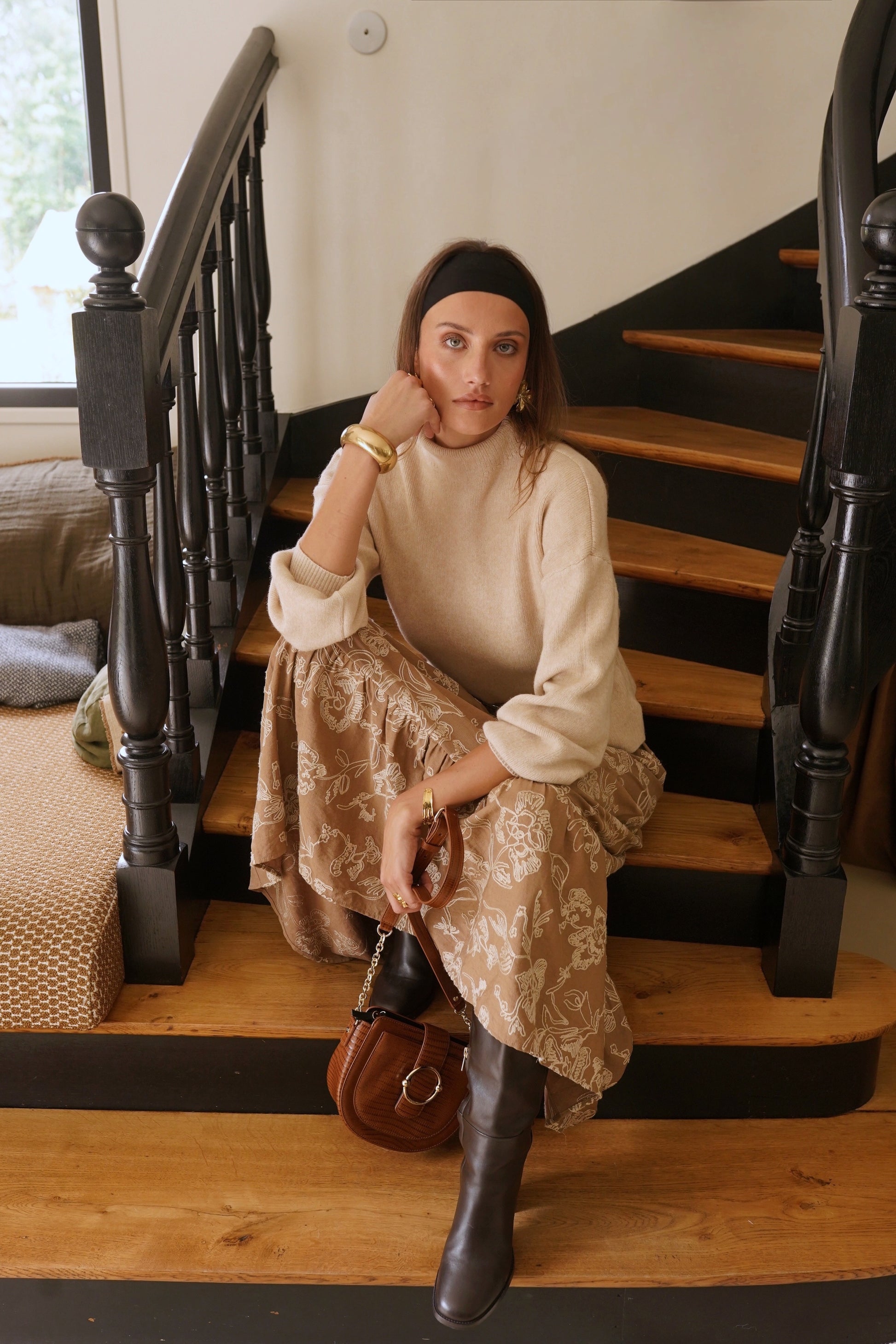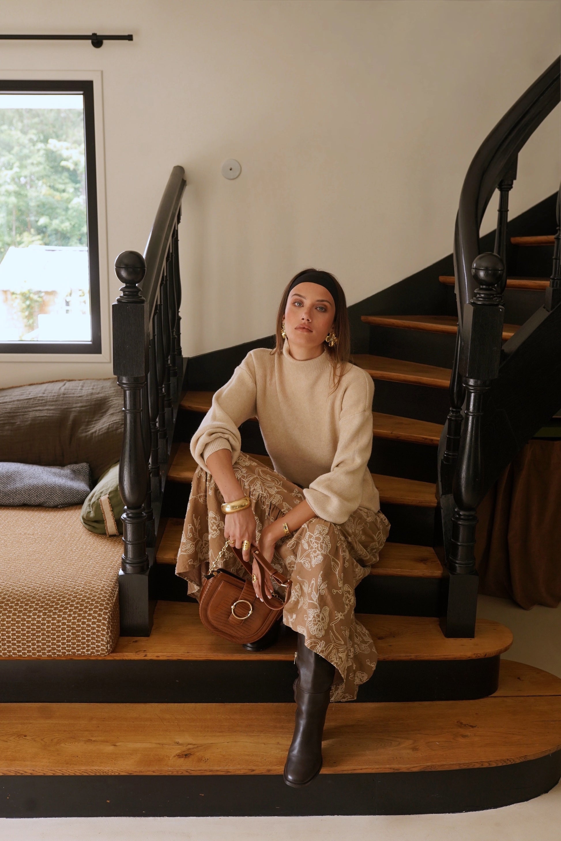 Hilda balloon sleeve coffee polo neck jumper