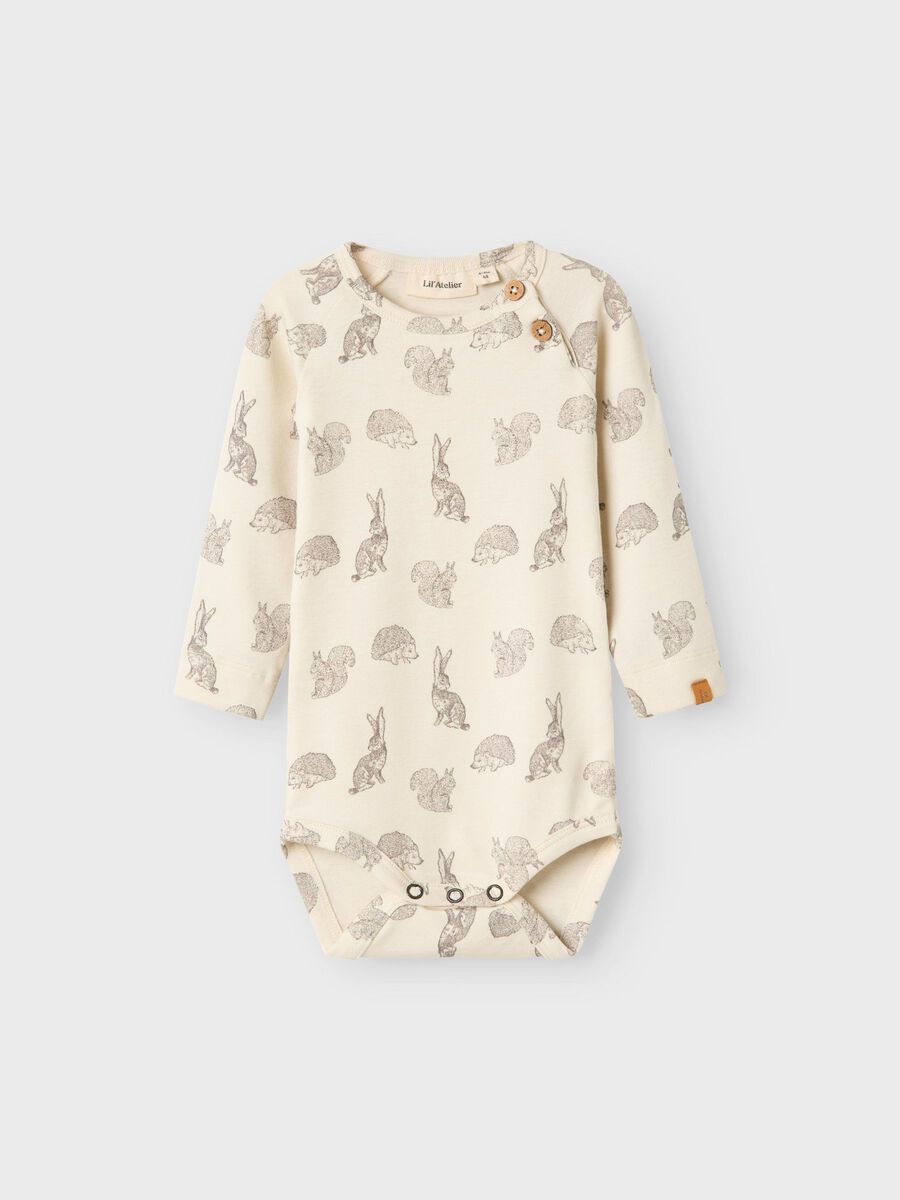 LIL' ATELIER animals beige LONG SLEEVED ROMPER