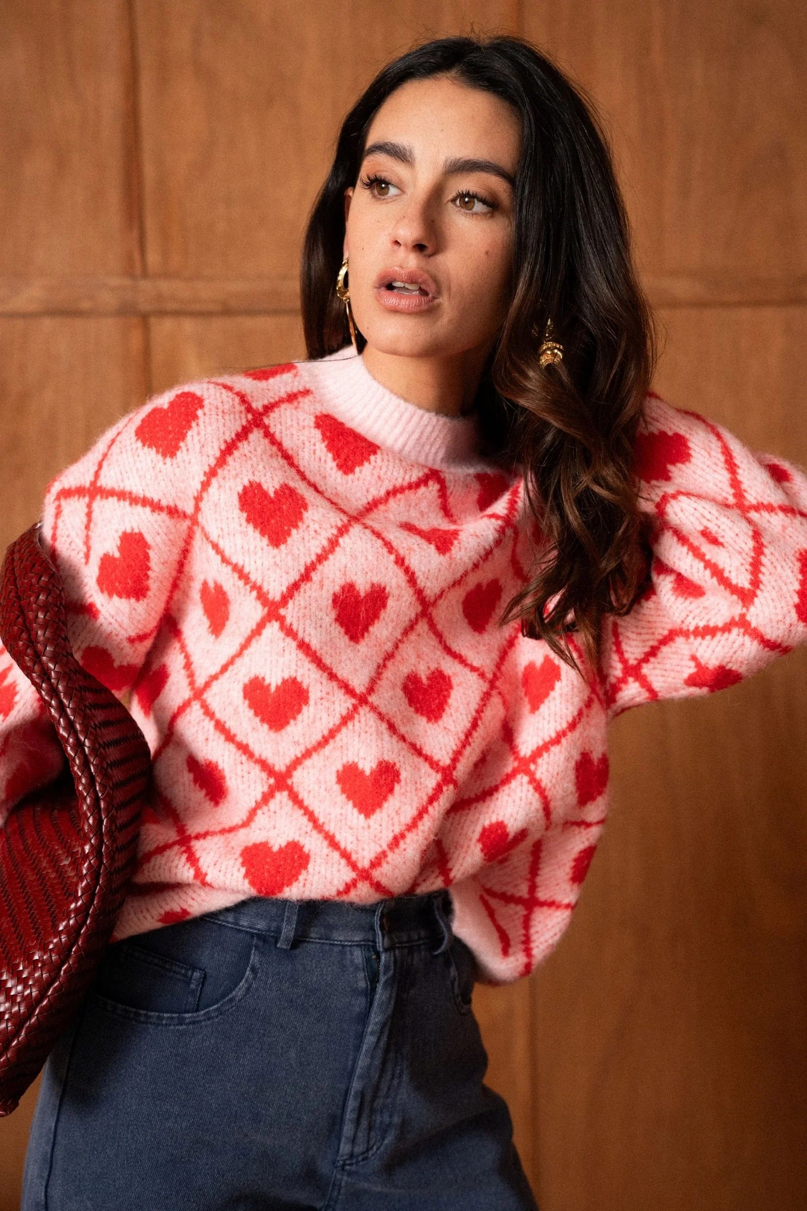Maggie heart print pink and red jumper