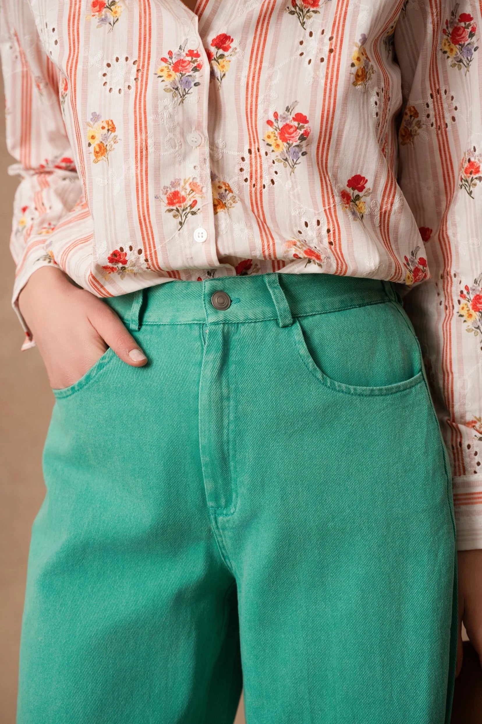 We love wearing it with a soft sweater for a casual-chic look, or with a light shirt tucked in to emphasize the waist and enhance the figure. Odette is the pair of trousers that effortlessly transitions from everyday wear to more dressed-up occasions.