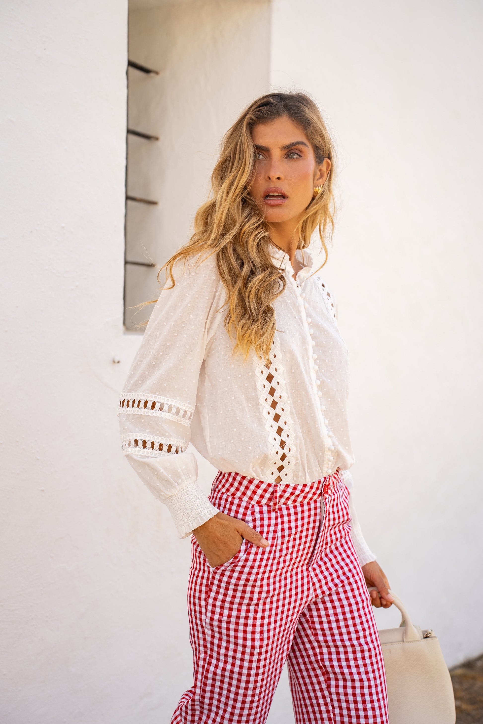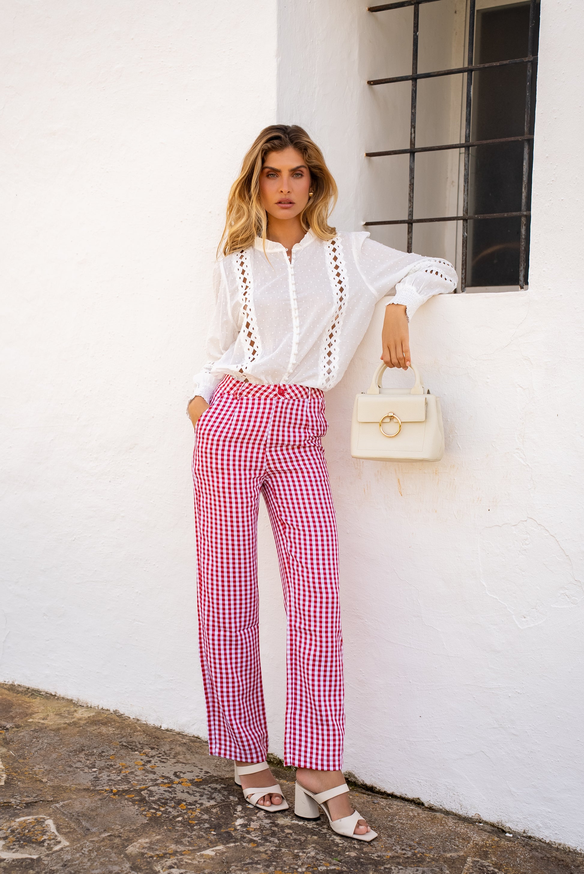 Expertly crafted with a blend of 65% polyamide and 35% cotton, these Penny red gingham trousers exude a classic French style. Soft and comfortable, these trousers are perfect for any occasion and are sure to elevate your wardrobe. Upgrade your look with these stylish and versatile trousers.