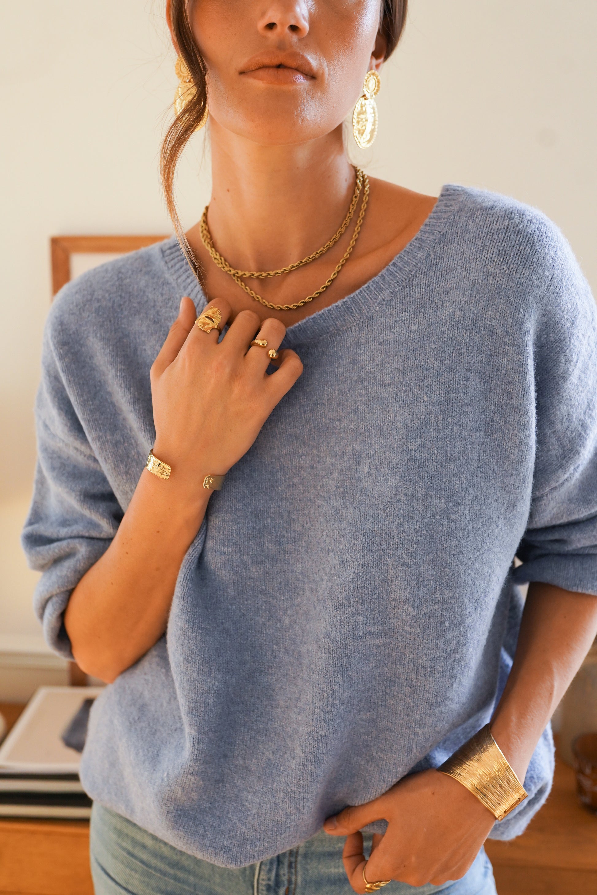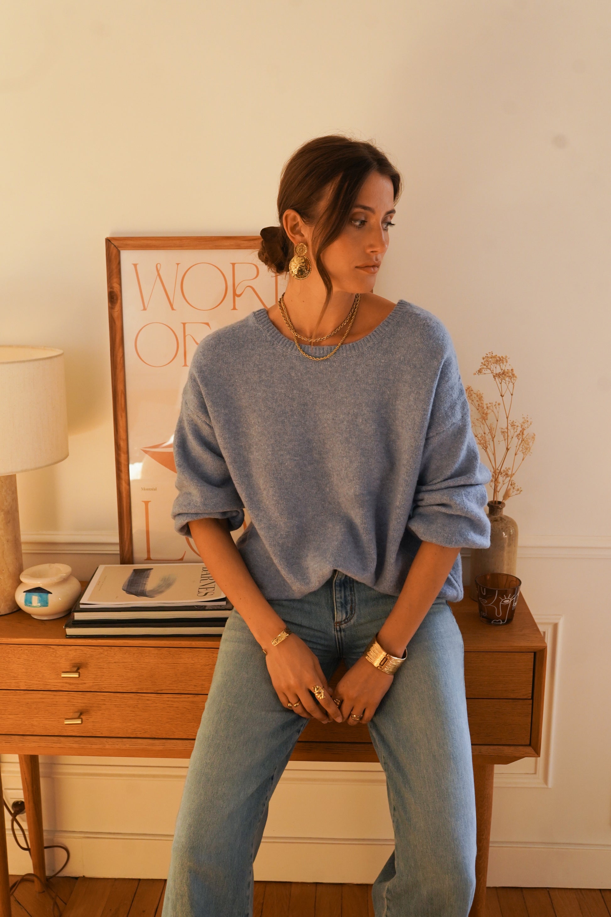 Stay stylish and comfortable with our Poppy powder blue jumper. Made with a perfect blend of 2% spandex, 10% wool, 30% acrylique, and 58% polyester, this jumper offers a flattering fit and lasting durability. Adorned with a charming polka dot bow, it's the perfect addition to your wardrobe.