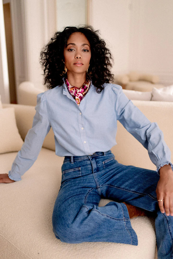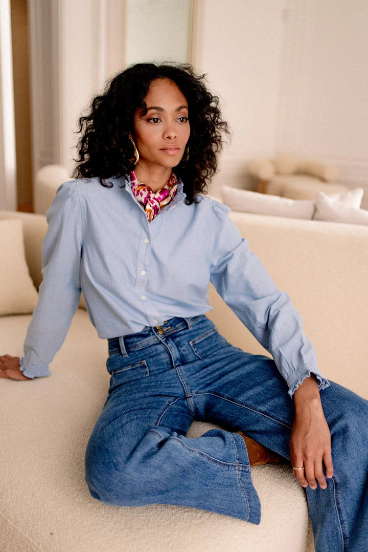 These timeless wide leg blue jeans feature an exclusive touch of glamour with luxe gold buttons. Crafted from high-quality denim fabric designed to withstand wear and tear, these sumptuous jeans are perfect for any stylish wardrobe.