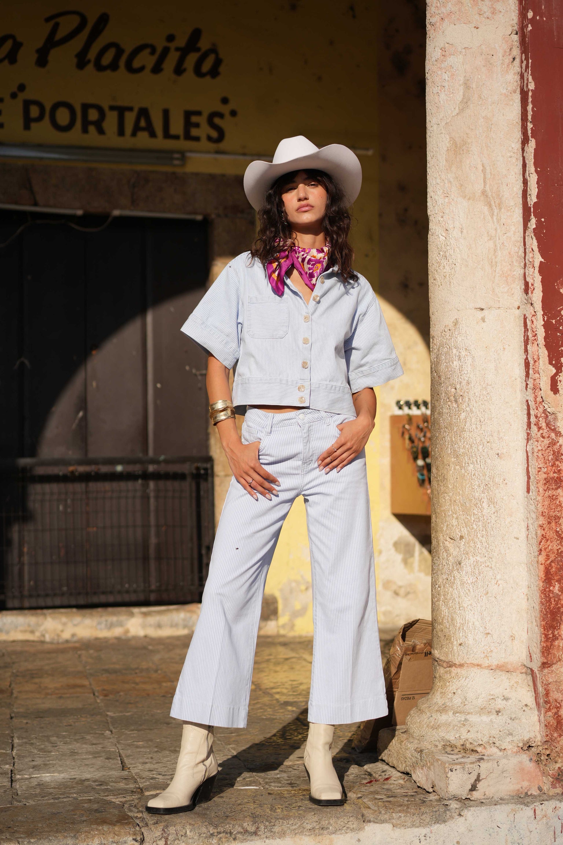 Indulge in pure luxury with our wide leg stripe’s jeans. The wide leg design provides effortless style and comfort, making it a must-have in your wardrobe.