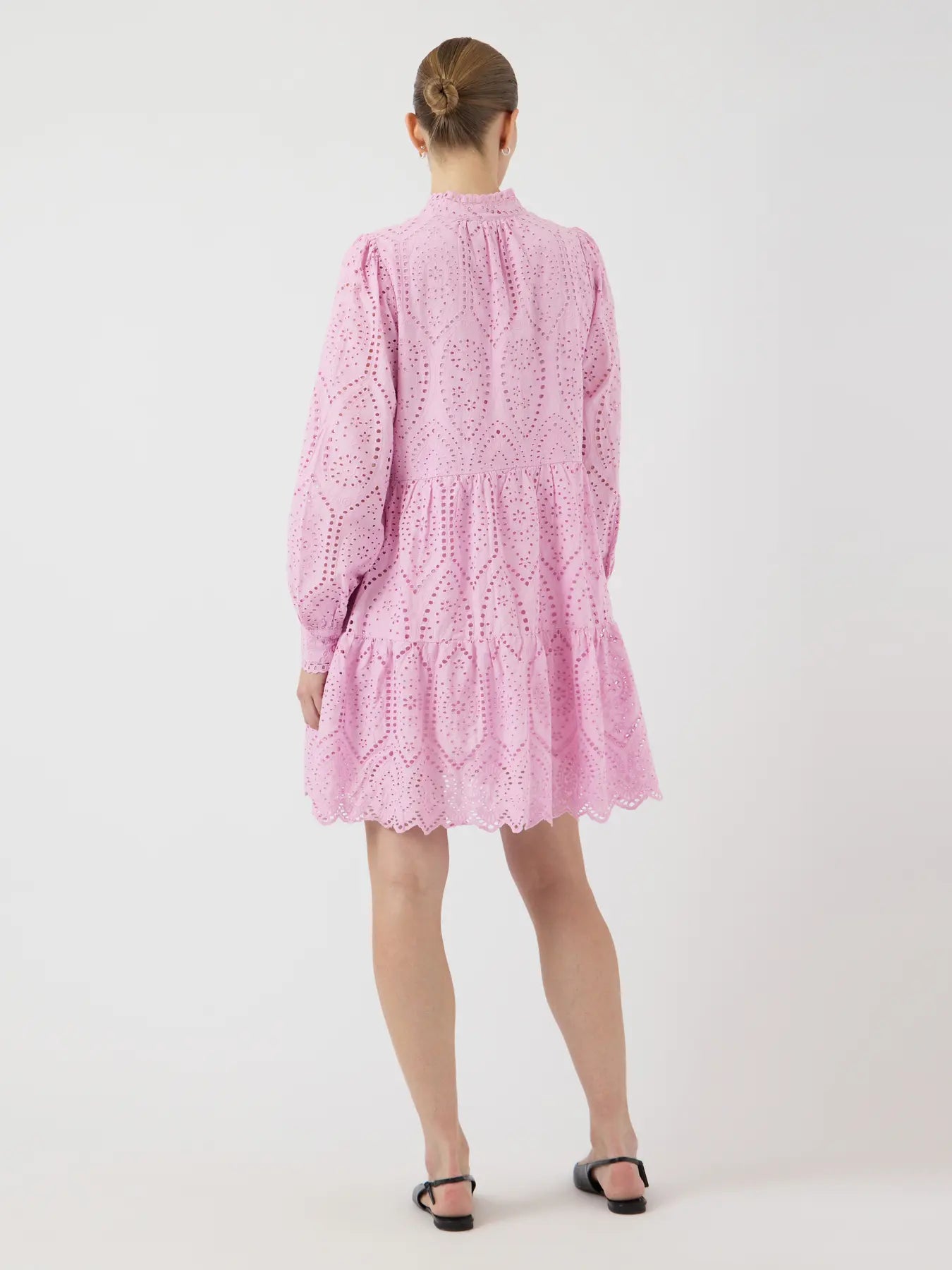 YAS pastel lavender lace mini dress in soft organic cotton, blending delicate colour with sustainable fabric choice. The gentle pink-toned lavender hue offers versatility across seasons, complementing various skin tones whilst maintaining a sophisticated aesthetic. Crafted from organic cotton, this dress provides breathable comfort without compromising on quality or longevity. The intricate lace overlay adds refined detail and movement, perfect for creating an understated yet polished appearance. An investment piece that balances contemporary design with conscious material selection.