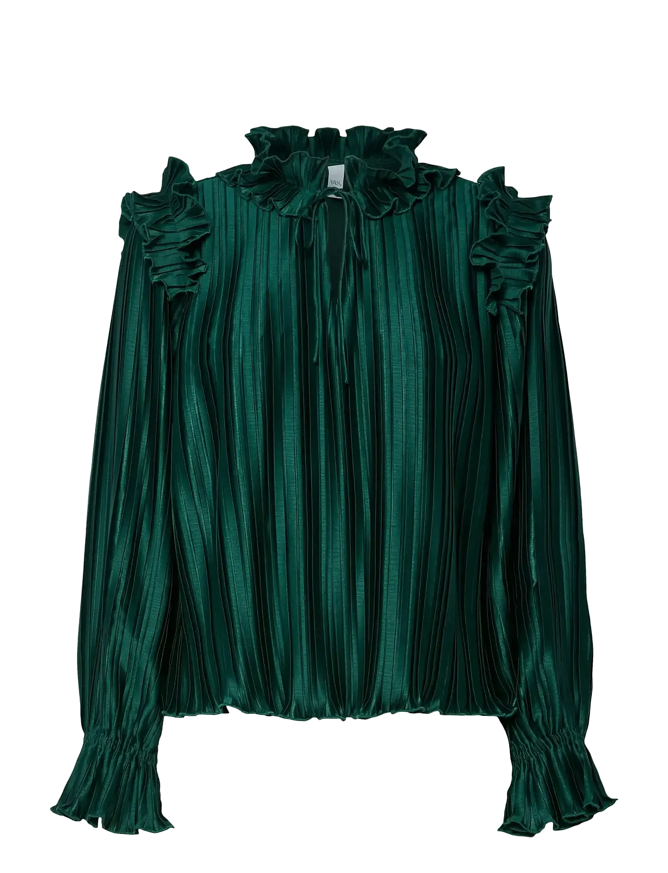 Crafted from durable polyester, this blouse features long sleeves finished with elasticated cuffs. The design incorporates a high neck and a string fastening, offering a regular fit.