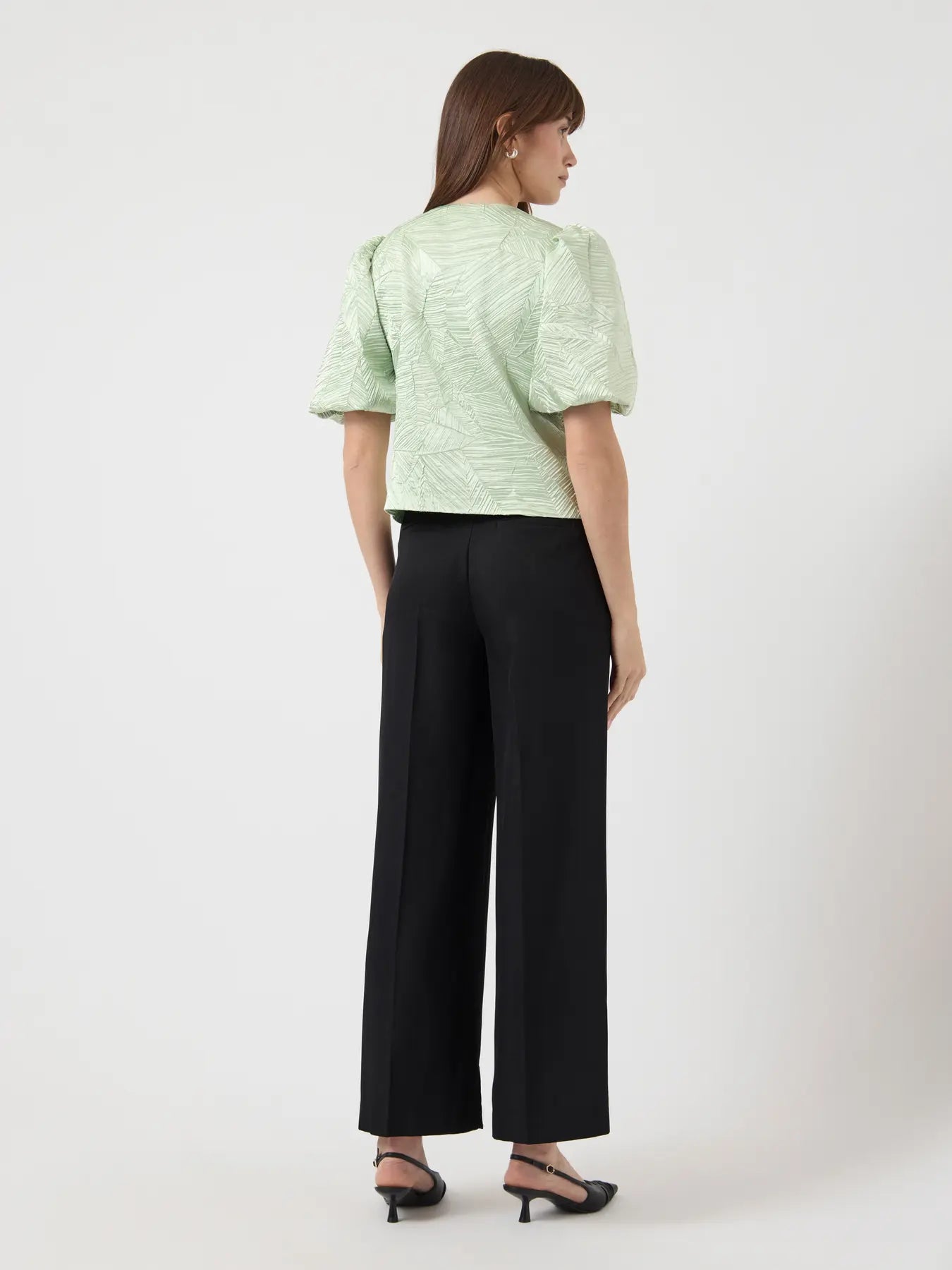 YASVIBE LEAF PRINT PUFF SLEEVE TOP